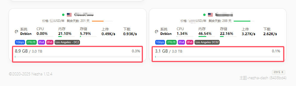 上一篇文章,讲了nezha哪吒探针加入流量告警提示,不懂的可以点击查看,这篇文章,可以做到,不点击就可以显示你的服务器每月跑了多少流量。